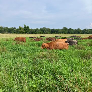 We've been in the grass-fed, grass-finished business for a while now. We're constantly working on improving our herd, improving our land, and improving our business. We like our cattle--they are calm and friendly, and they do well on grass.